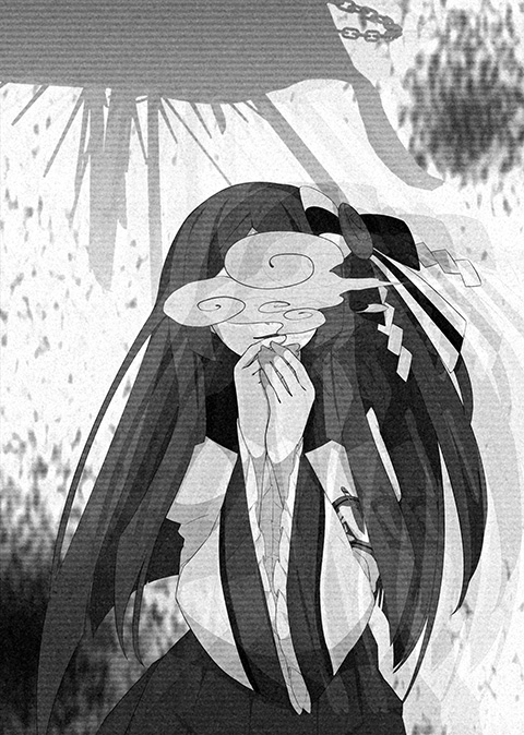 風紀委員の彼女だった。その表情にはまだ淀みが掛かってうまく見えない。だが、彼女がいるのはまさに、バケモノの足元、直下だった。影を落としているそいつに気づき、見上げて驚愕している。